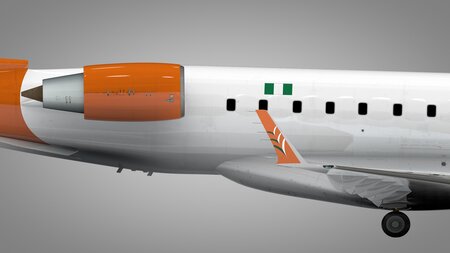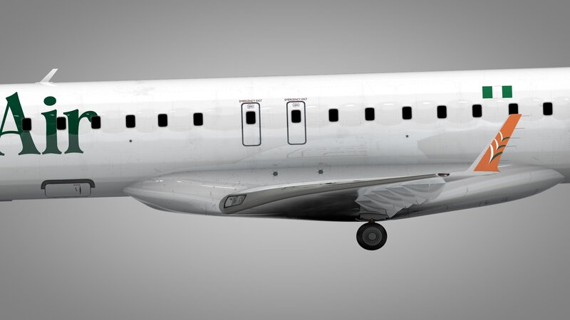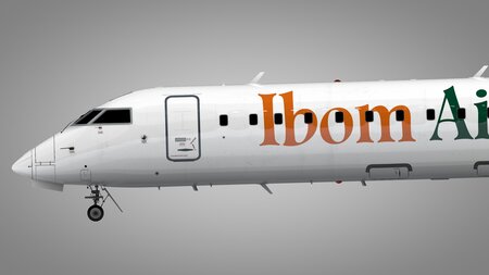 Ibom Air BOMBARDIER CRJ 900 L2110 is ready to be animated. You can easily position it the way you need or animate.