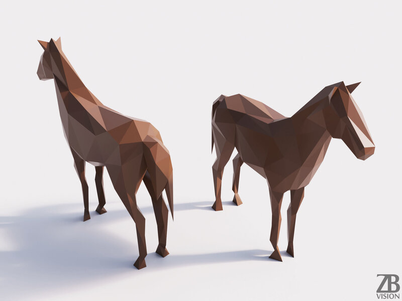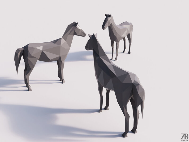 This is a lowpoly 3d model of a standing horse. The lowpoly horse was modeled and prepared for low-poly style renderings, background crowd, and general CG visualization. The 3d stallion is ready to be inserted e out of the b in your scene of.