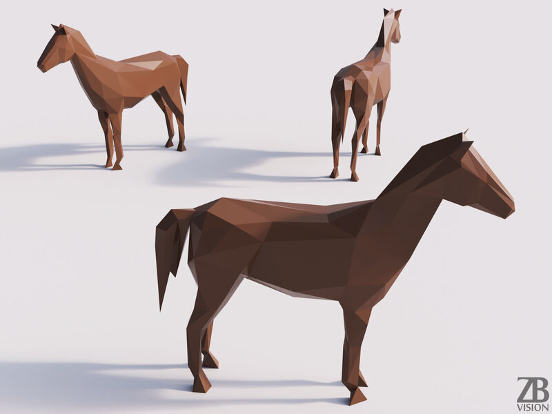 All preview images were rendered with Corona. You will get only the lowpoly horse model visible on the renders, not the scenes used for preview renders. The product is ready to render out-of-the-box. Please note that the lights, cameras, and any background not described above objects are not included in the product. The model is clean and alone in the provided files, centered at the origin, and has a real-world scale.