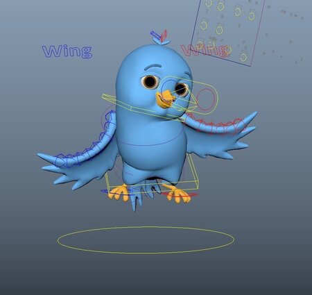 Cartoon blue color bird. You can change or add costume props inside the rig.