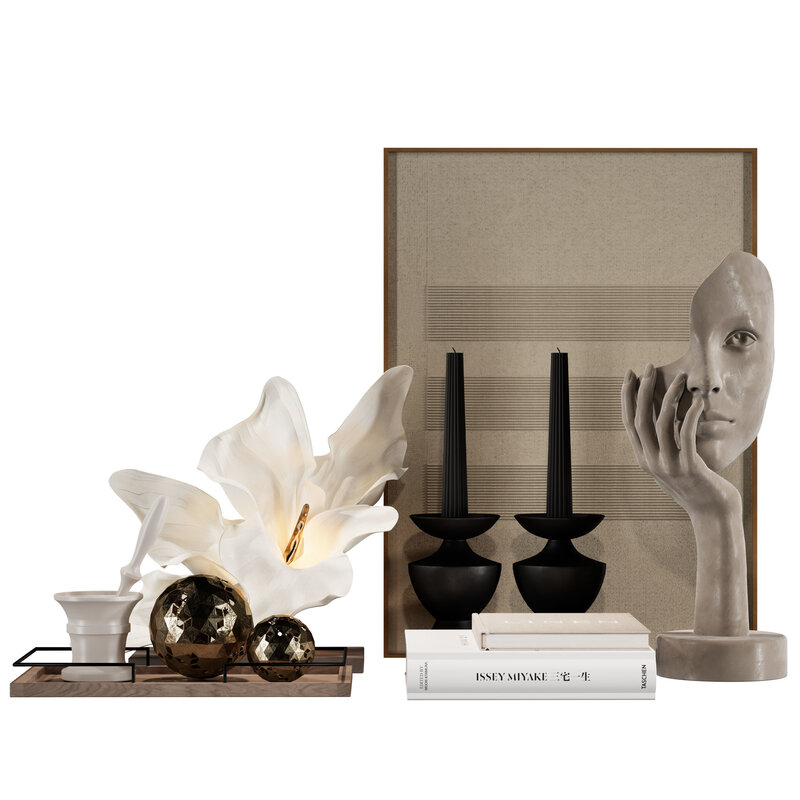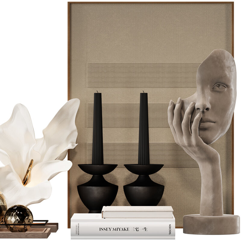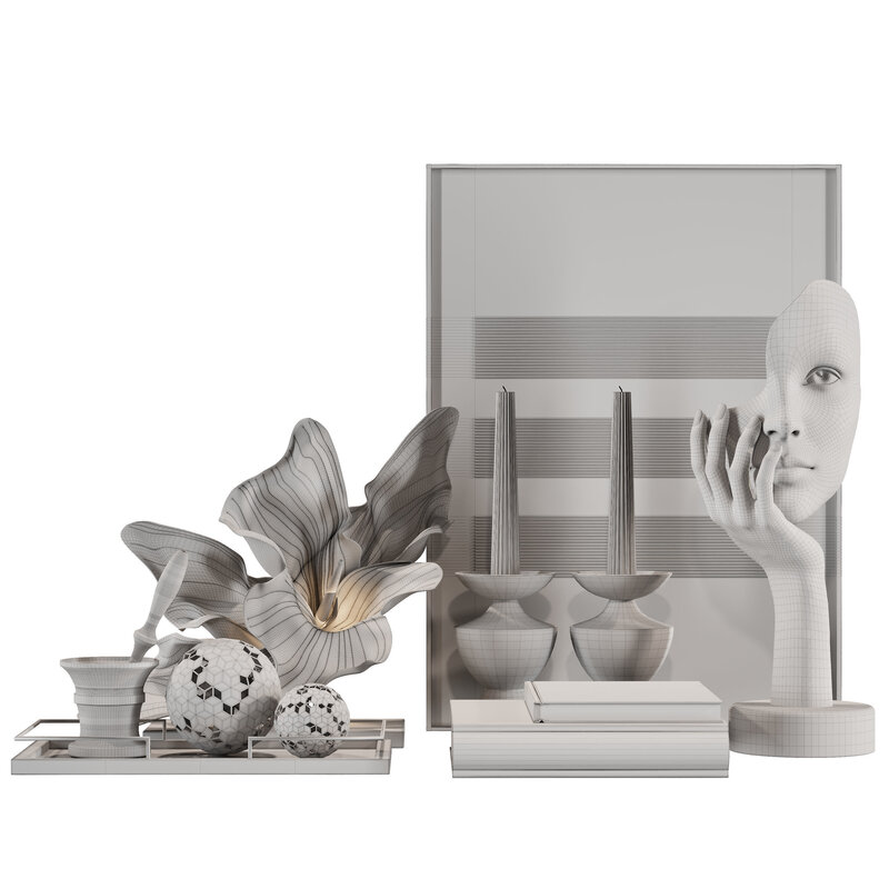 Name: Decorative set 037 Format: 3Ds Max 2017 Export: FBX Render: Corona (6) Polys: 1072418 Verts: 830696 Units: Millimeters Dimension: 1595.69 x 915.77 x 855.39