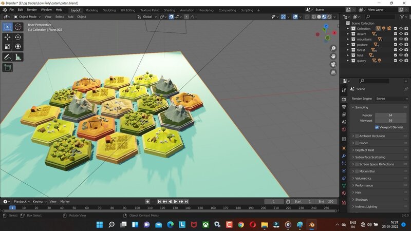 Catan-craft Blender 3D model with game Level - low poly games ready