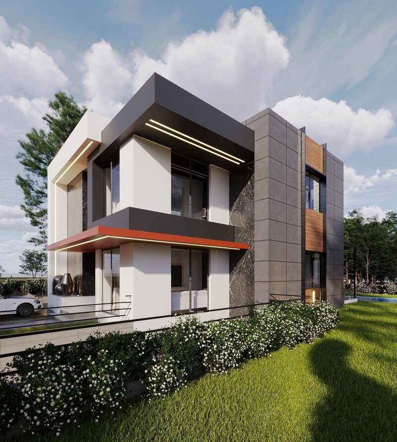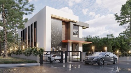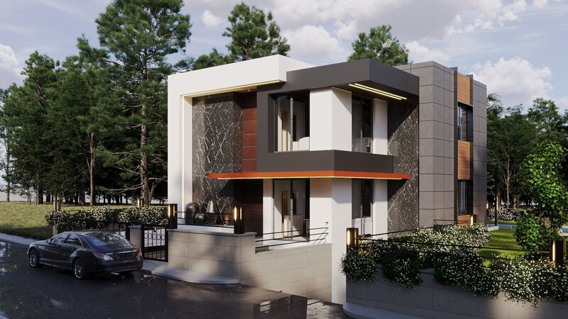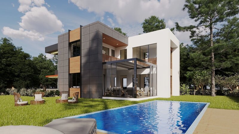 Small modern villa with garden and swimming pool contains sevral of tree model you can use in your future projects, 2 model of cars, and 2 set of outdoor furniture
