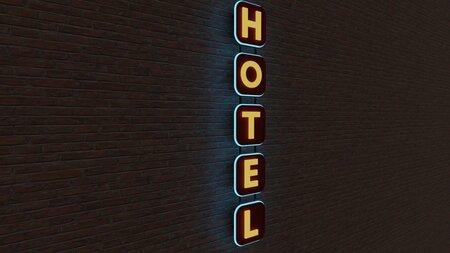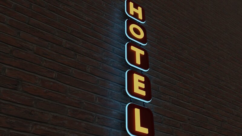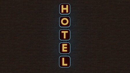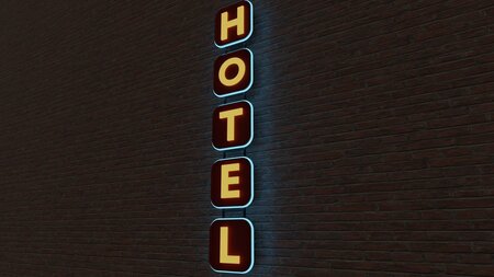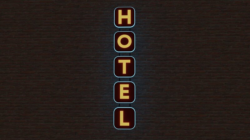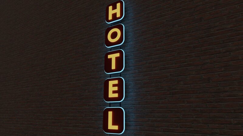 Neon hotel sign model. Can be used as a prop or for creating and outdoor environments.