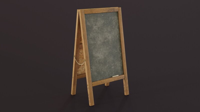 This Chalkboard Sign model is created with Blender and textured in Substance Painter. You can use this model in your games, visual projects etc.