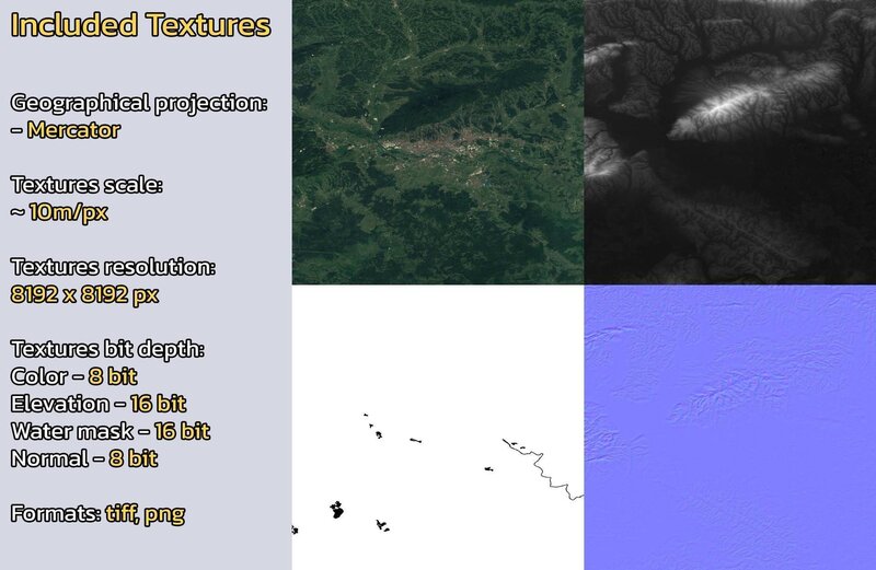 Warning: minor clouds/artifacts may be present on the diffuse color satellite texture due to the nature of the dataset. Check product images.