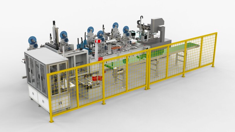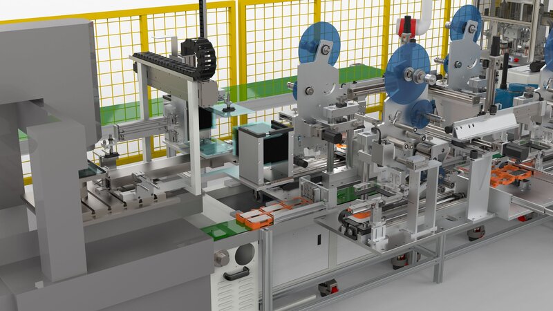 The drawing is the design of the automatic mobile phone film production line: the workstation where the new machine in the production line sticks the protective film, the machine is transported to the manipulator manipulator, and the machine is put into the filming tooling conveyor line for filming, and after completion, the manipulator will take it out and put it into the return conveyor. The drawing format is xt neutral format, which can be disassembled.