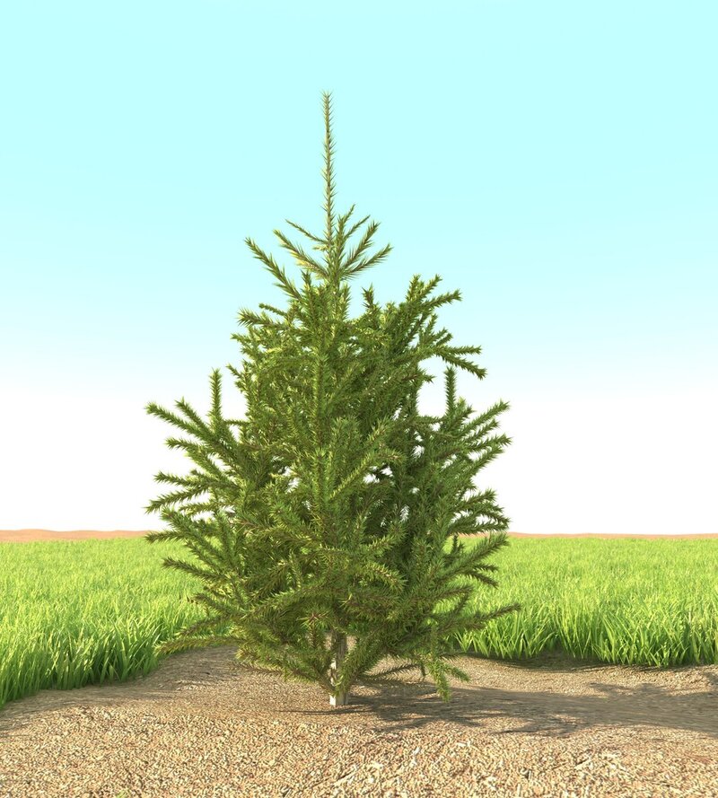 3D model fir small ordinary with needles-geometry. 3Dmax 2015, VRay 3.20.03. Additional formats: 3dmax 2012, 3ds ,. obj, .fbx., texture of needles, stem, zamli, light adjustment, VRay cameras.