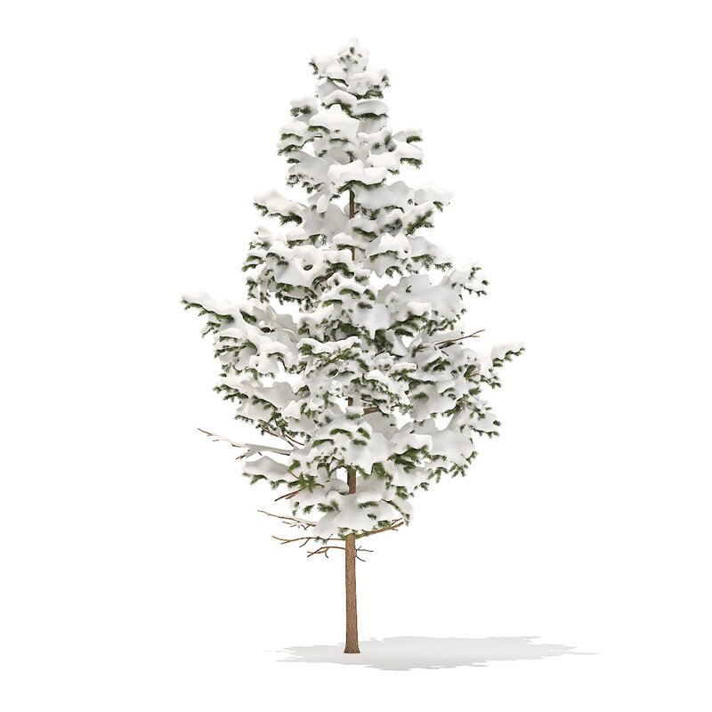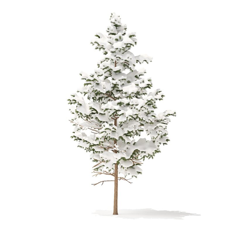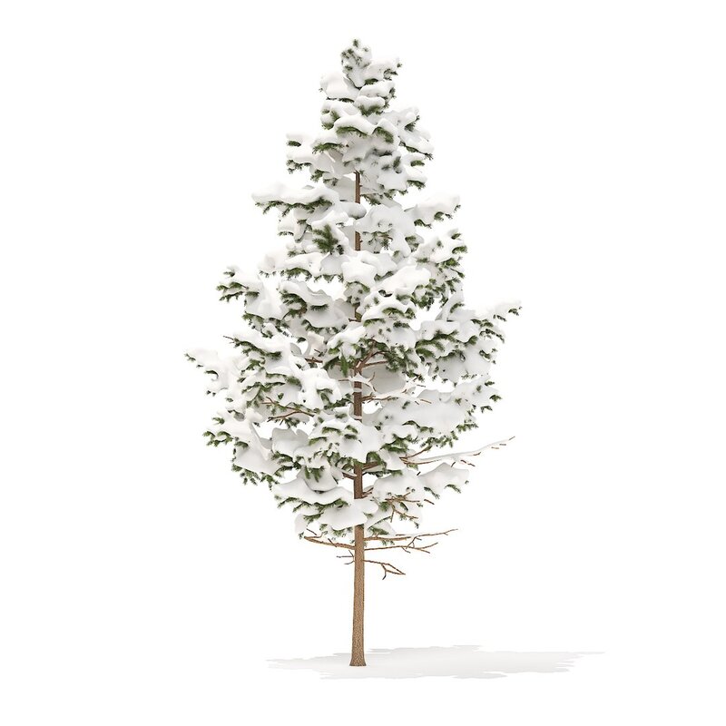 Pine tree with snow 3d model. Height: 5.5m. Compatible with 3ds max 2010 (V-Ray, Mental Ray, Corona) or higher, Cinema 4D R15 (V-Ray, Advanced Renderer), FBX, OBJ and VRMESH.
