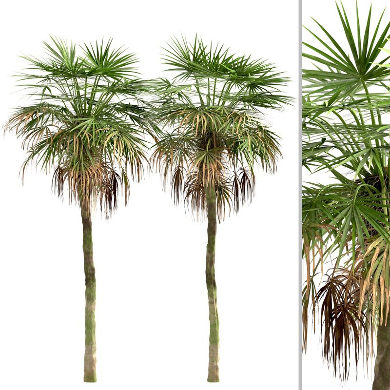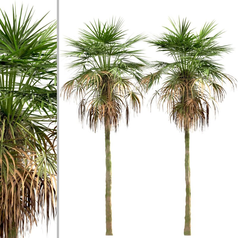 4 different Trachycarpus Fortunei trees in the scene.