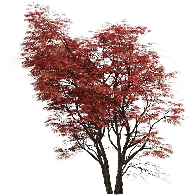 3 different Acer Palmatum ( Crimson Queen ) trees in the scene.