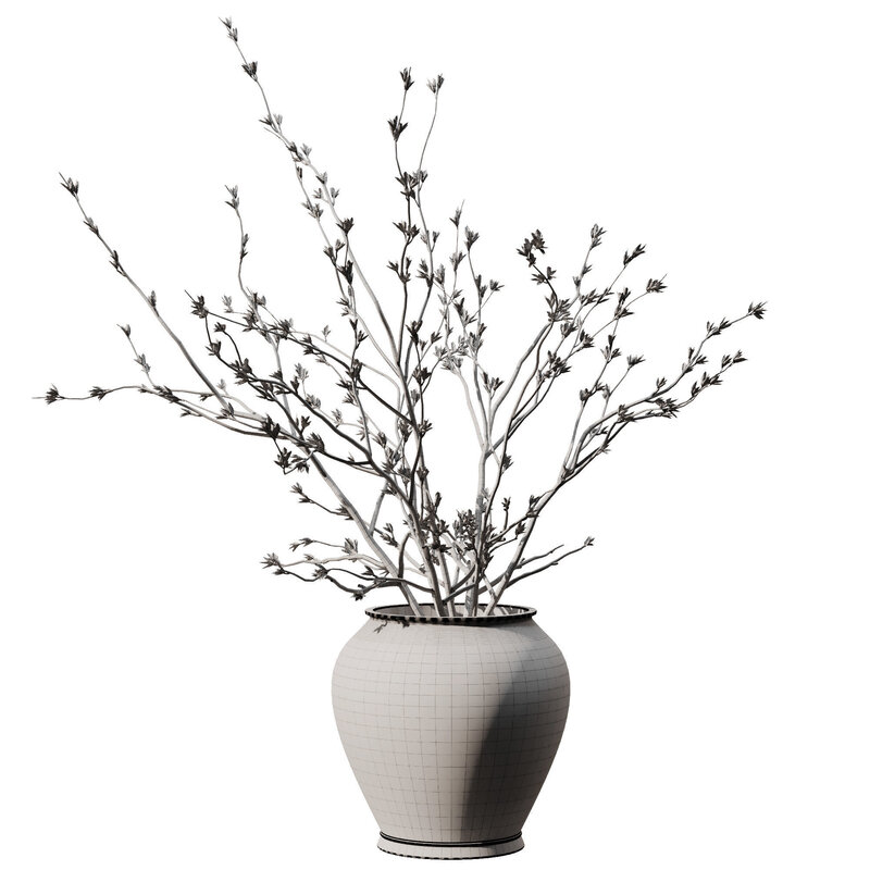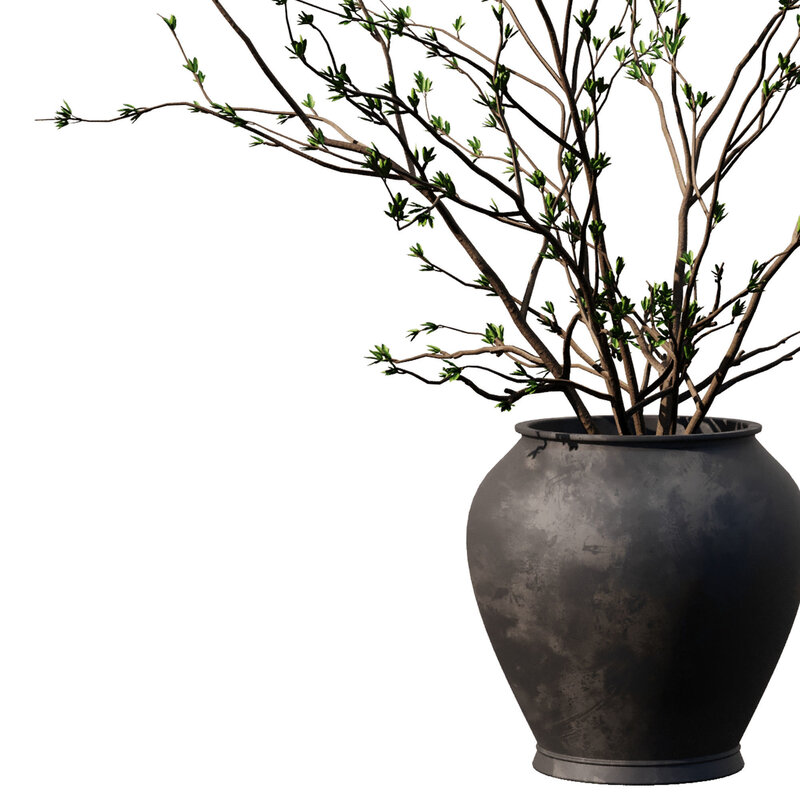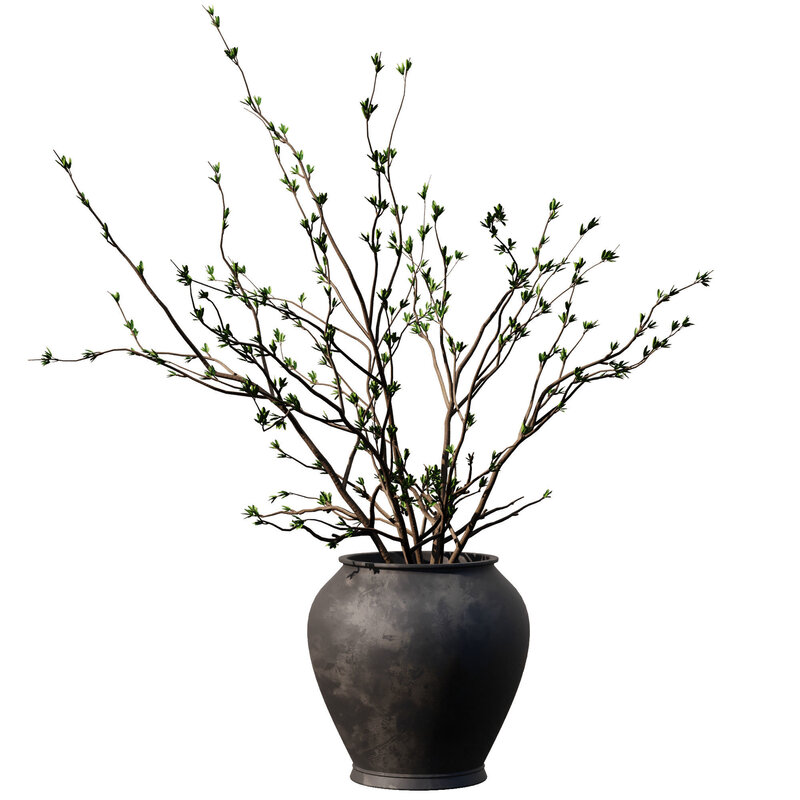 Dry Branches in black pot 3D model