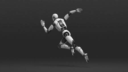 Advanced Male Humanoid Robot Running Pose