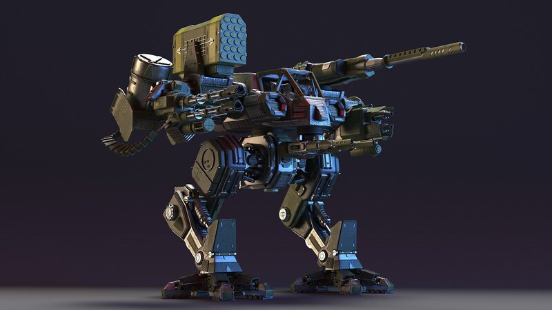 It is designed for ground combat and is capable of walking or maneuvering on legs, allowing it to traverse rough terrain and engage in direct combat with enemy forces. These machines are often used in futuristic or science fiction settings and are a formidable force on the battlefield.