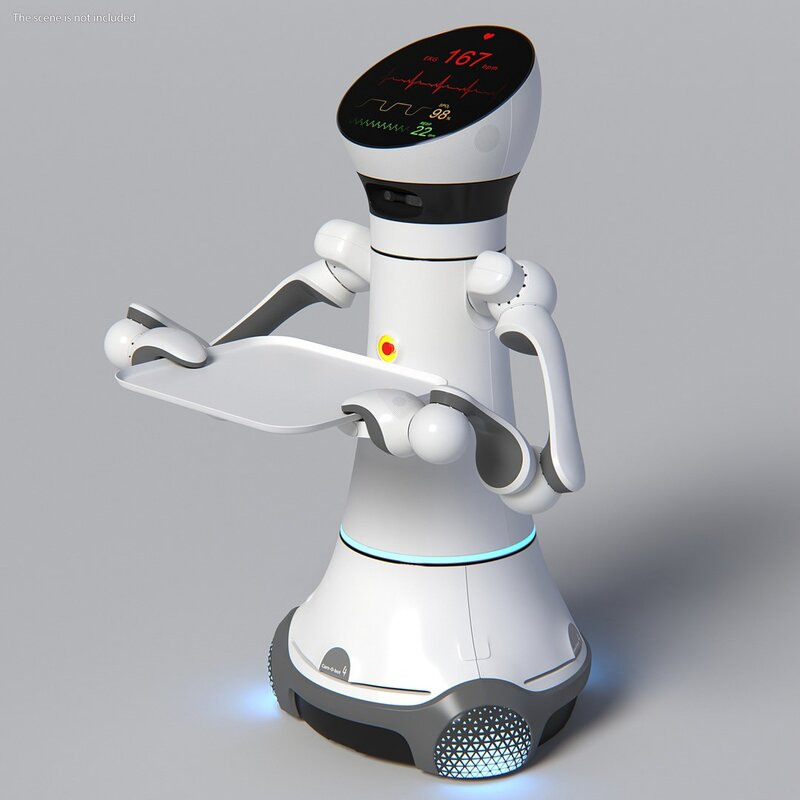 Careobot 4 with Medical Tray is a high quality, photo real 3d model that will enhance detail and realism to any of your rendering projects. The model has a fully textured, detailed design that allows for close-up renders, and was originally modeled in 3ds Max 2014 and rendered with V-Ray. Renders have no postprocessing.